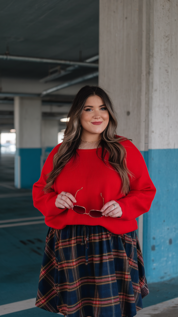 - Sweater: A vibrant red piece adds an eye-catching splash of color, lifting spirits and moods.